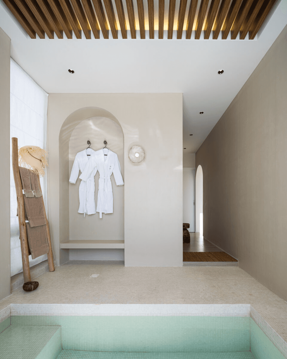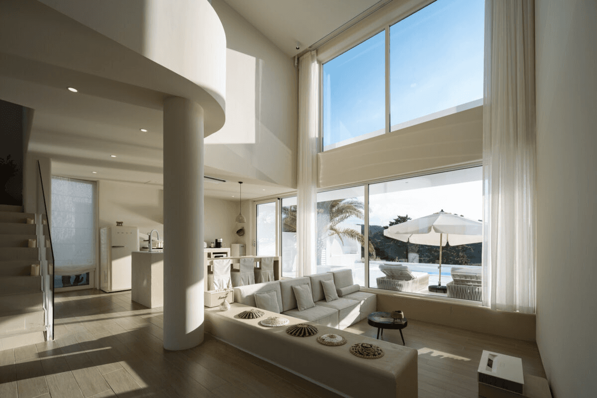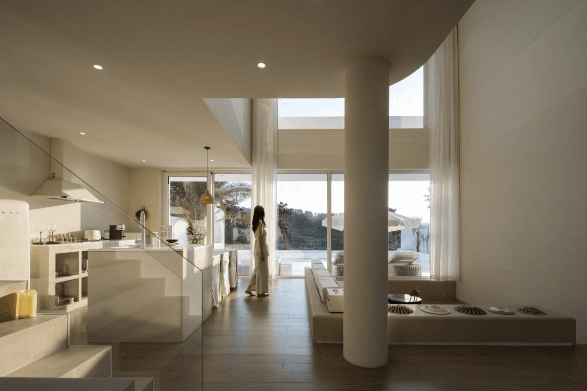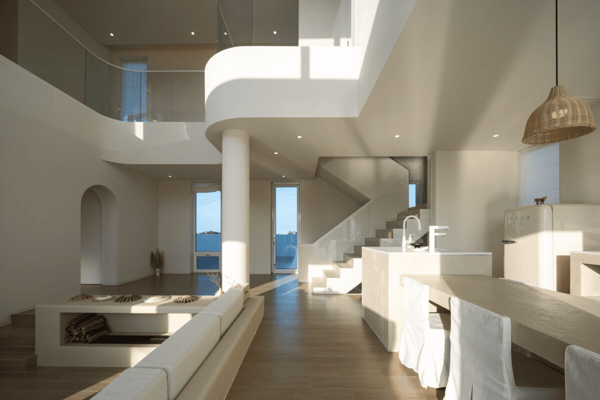 ‘빛이 흐르는 유려한 도자기 같은 공간’ 산과 숲, 그리고 바다를 품은 애월의 자연을 느끼며 온전한 나를 찾는 장소. 단순하지만 직관적인 덩어리 내부로 비치는 빛은 유려한 선을 따라 공간 전체에 흐르며 굴곡을 극대화 시킨다. 제주스러운 풍경 위에 이국적인 감성을 느낄 수 있는 이 공간은 순백의 모래사장을 걷는 듯 외부에서 내부로 자연스럽게 흘러 들어오면 모난 부분 없는 해변의 조약돌을 연상 시키는 곡면의 공간이 펼쳐진다. Directed by B I : U M Architectural designed by 가람영산 건축사 사무소 Space designed by B I : U M Photograph by haneol pics.