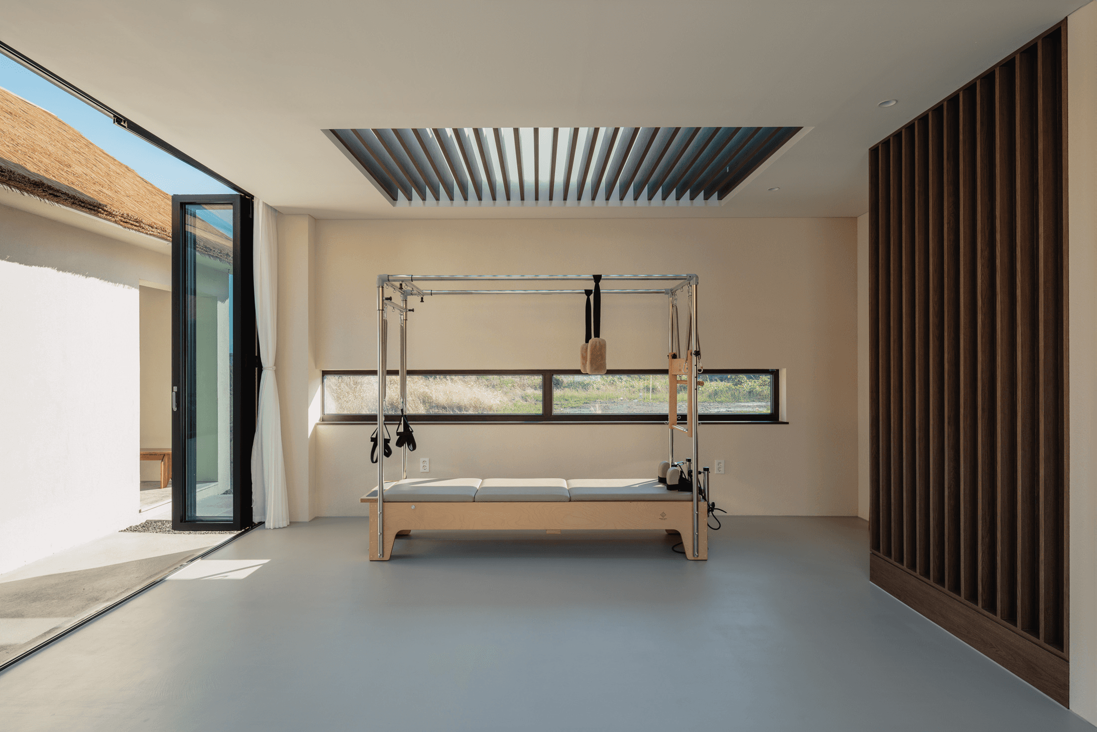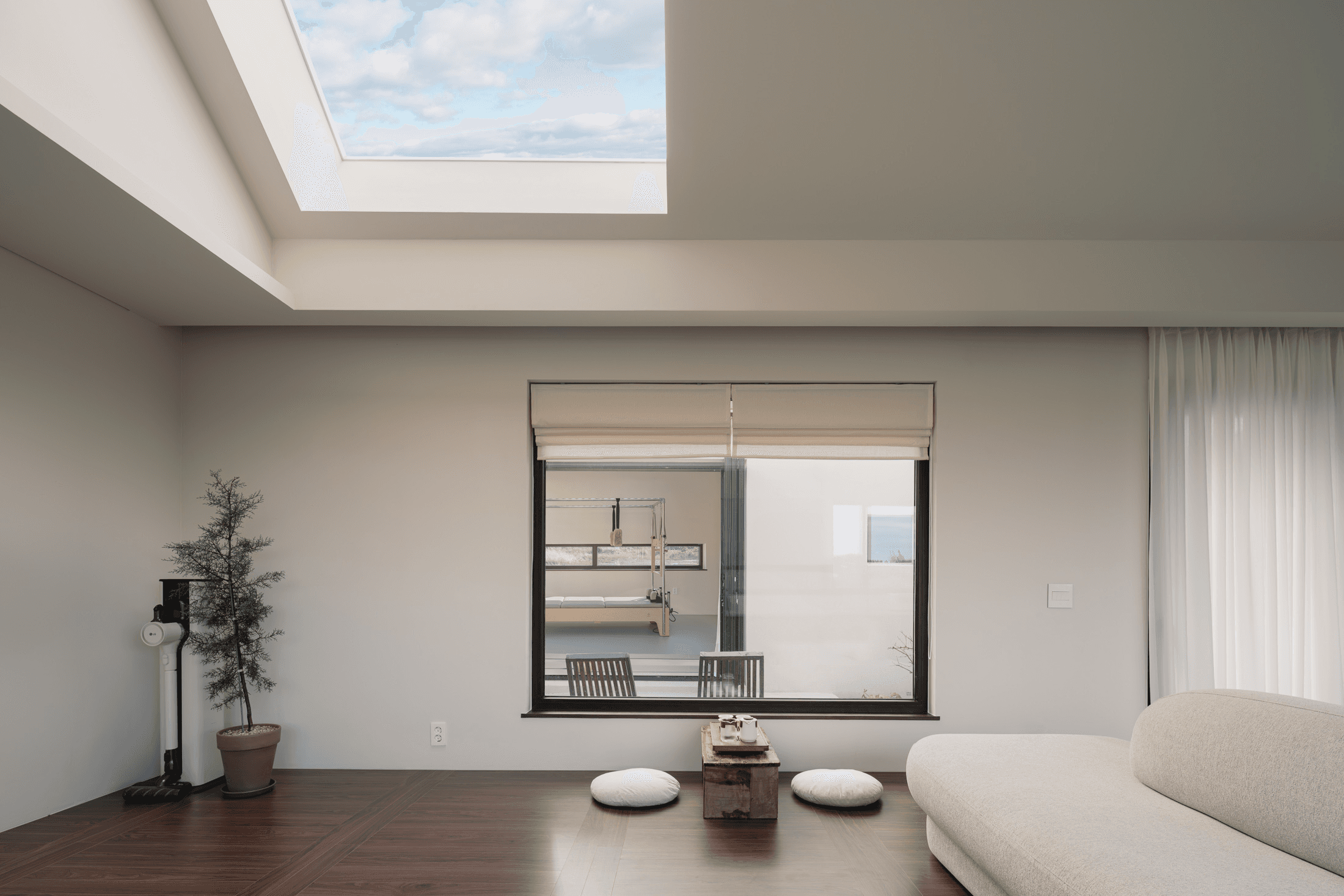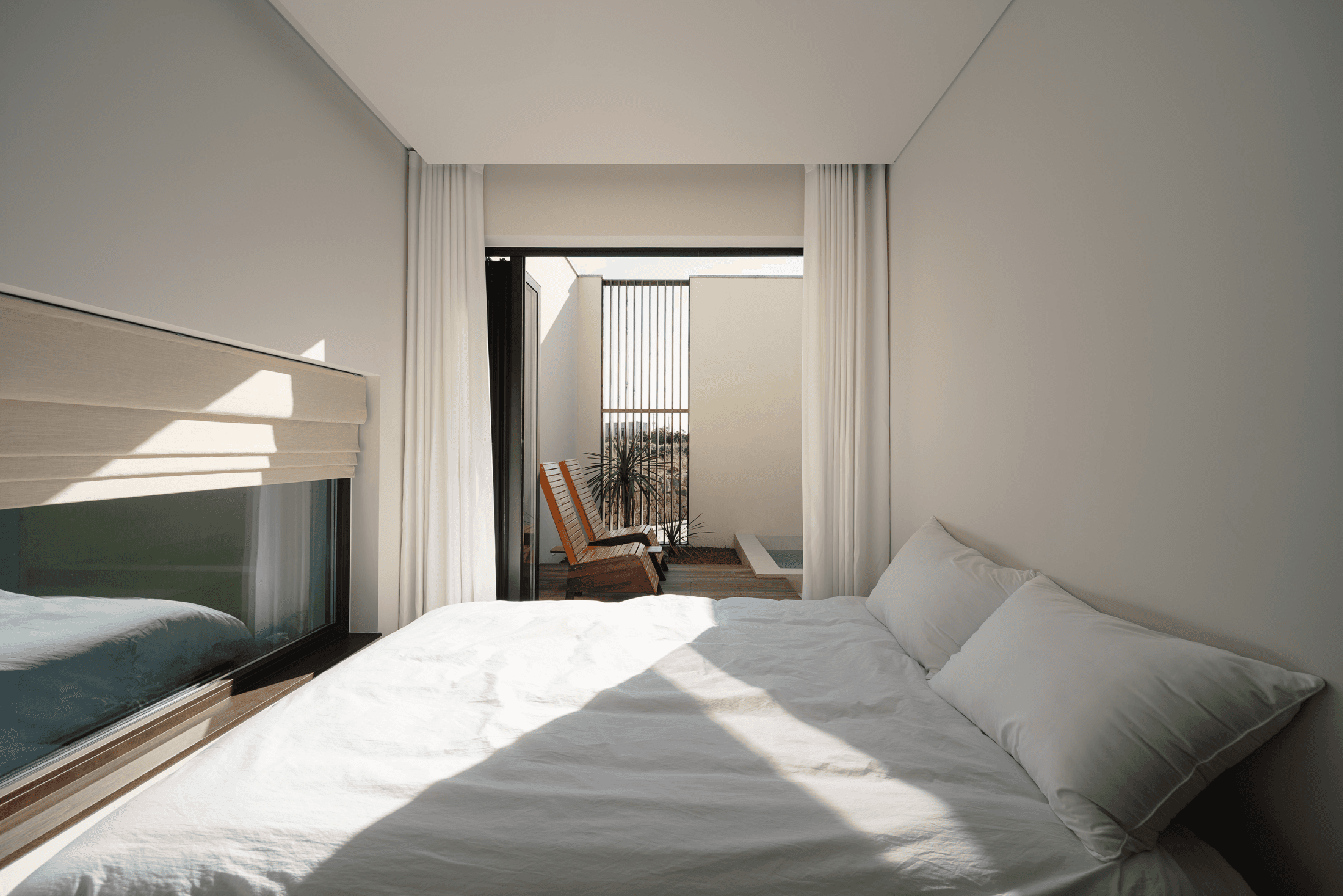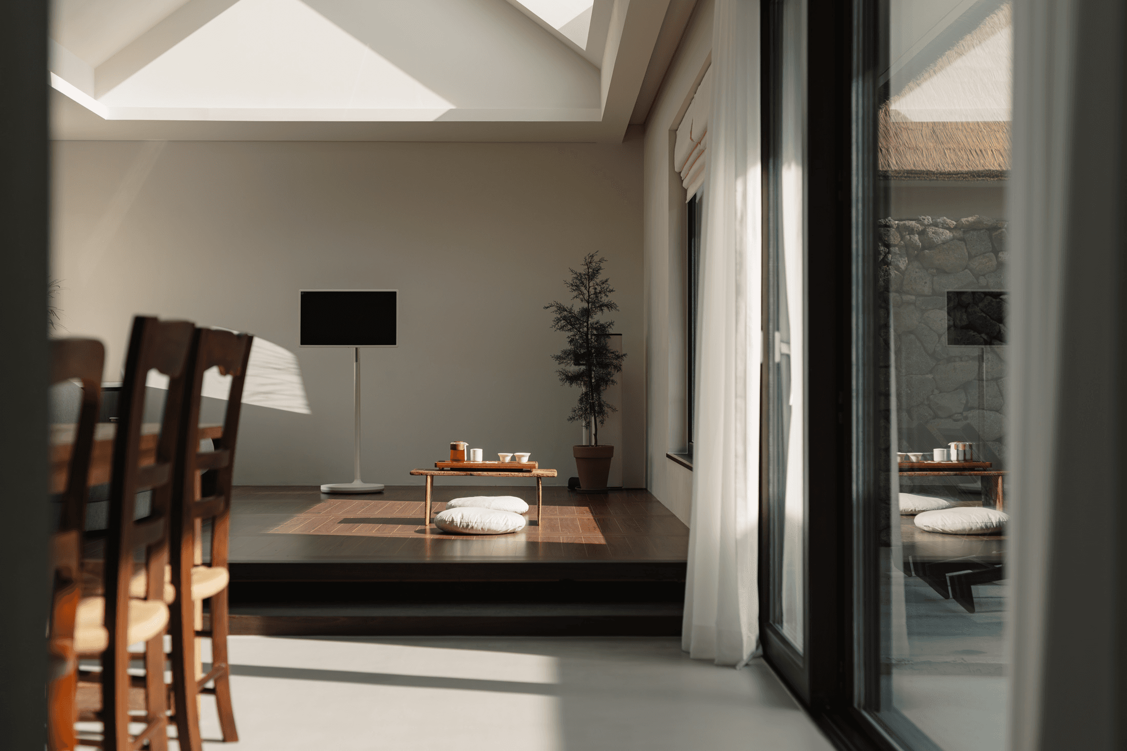‘속삭임의 순간’ 공간의 배치에 의해 자연스럽게 형성되는 자그마한 골목. 오묘한 정취와 제주의 푸른 바다. 그 속에서 우리는 사랑을 속삭이고, 휴식을 취하며, 낭만을 즐긴다. 아늑함 속에서 정신을 수양하고 땀을 흘리는 체험이 공존하는 또 다른 작은 세계를 만든다. 멀다면 멀고 가깝다면 가까운 그 몇 걸음 속에서 우리는 공간을 느끼고, 자연을 느낀다. 공간을 따라 발견하는 소소한 즐거움은 작은 공간이 커 보이는 역할을 한다. 공간과 공간 사이의 빈 공간이 만들어 내는 아늑함 속에서 각자 속삭임의 순간을 즐기는 하나의 작은 세상을 만들고자 한다. designed by B I : U M constructed by Y&K design photograph by haneol pics
